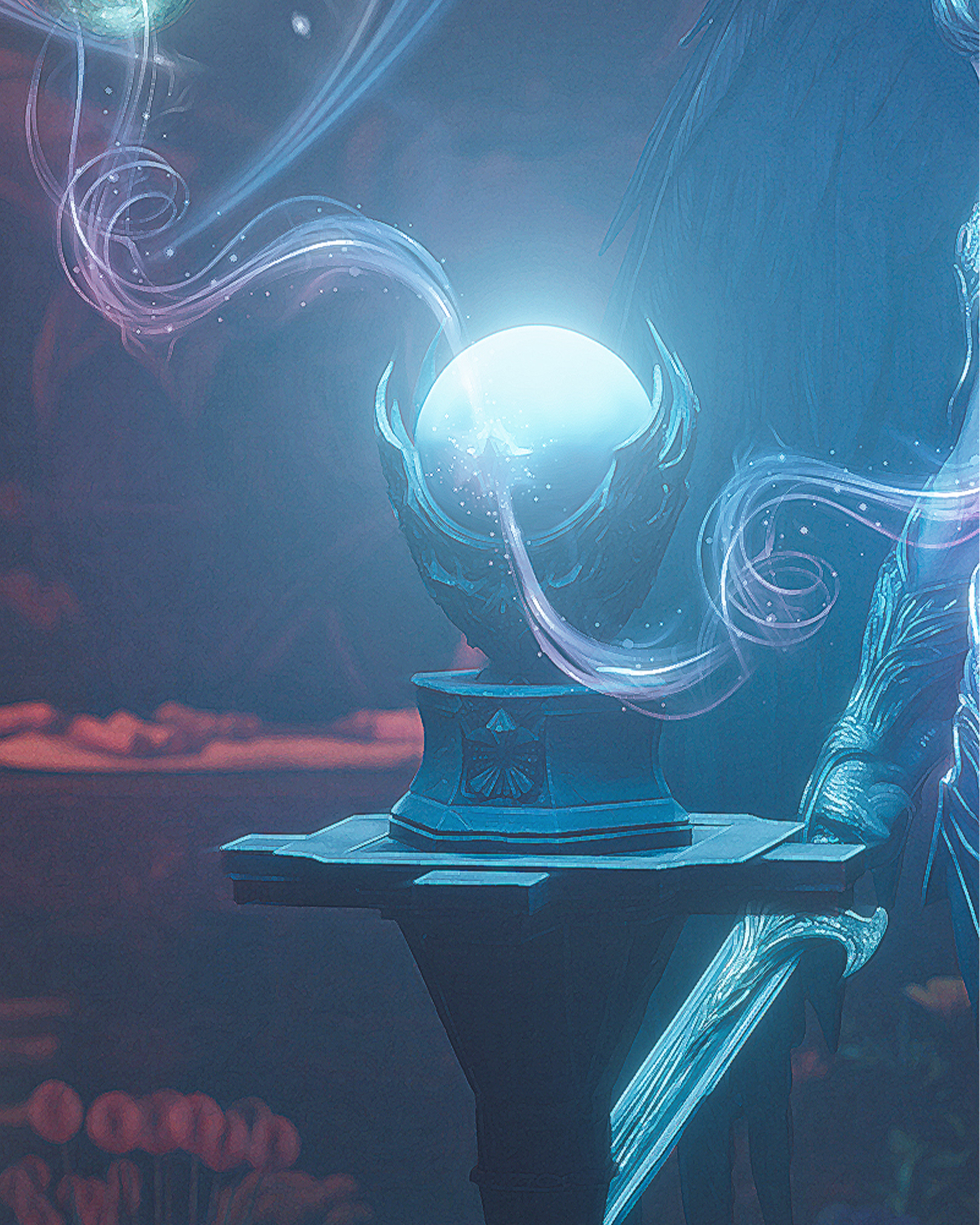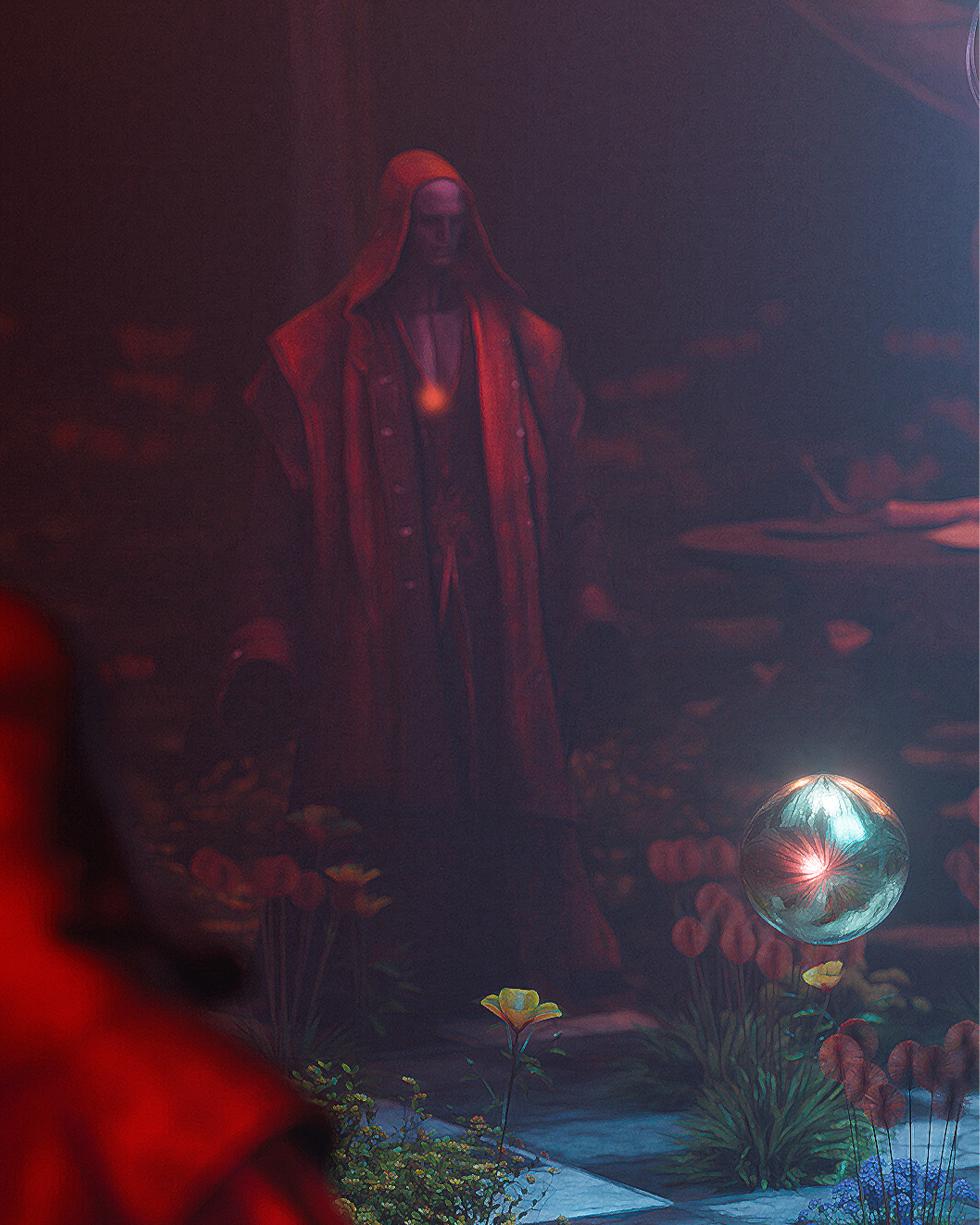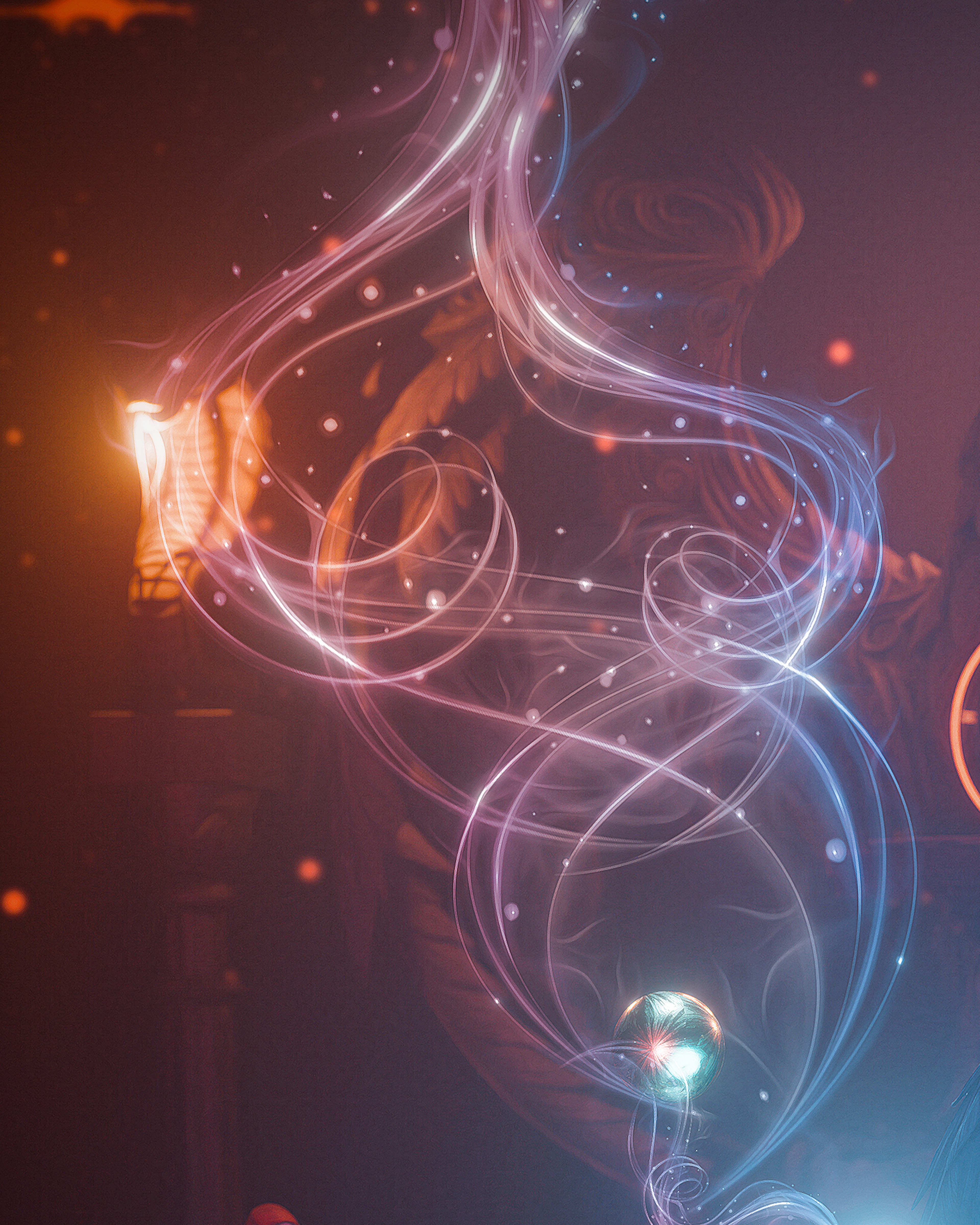 The moment I felt that sympathy, the mask shattered. He transformed into a tall, muscular man standing before me. He wore reddish robes and metallic shoes, his chest bare, with a defiant, rebellious smile. He reached out to me, ready to show me the true frequency we both share.